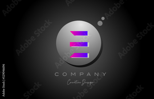 E sphere alphabet letter logo icon design with dot. Pink grey creative template for company and business