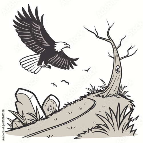 Eagle flying over landscape bird wings