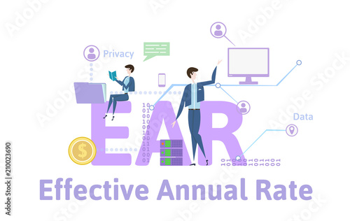 EAR, Effective annual rate. Concept with keywords, letters and icons. Colored flat vector illustration on white background.