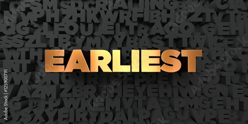Earliest - Gold text on black background - 3D rendered royalty free stock picture. This image can be used for an online website banner ad or a print postcard.