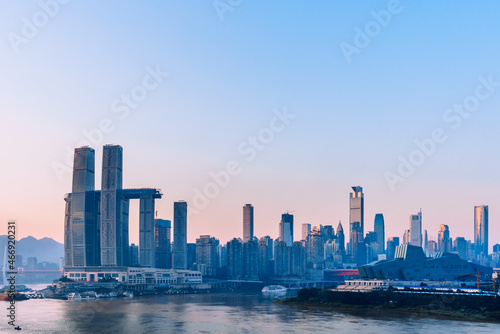 Early morning scenery of Chaotianmen Pier in Chongqing, China
