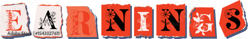 EARNINGS Floral Typography of a Concept Word � Elegant Torn Paper Letter Design