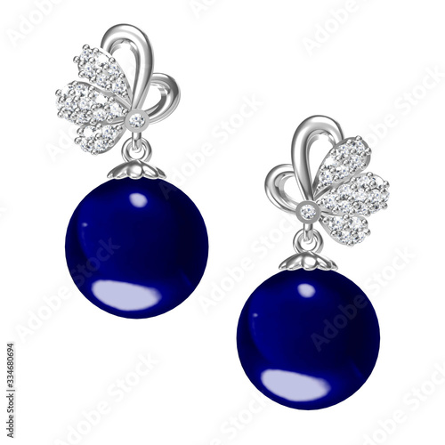earrings with blue crystals on white background,3D Rendering.