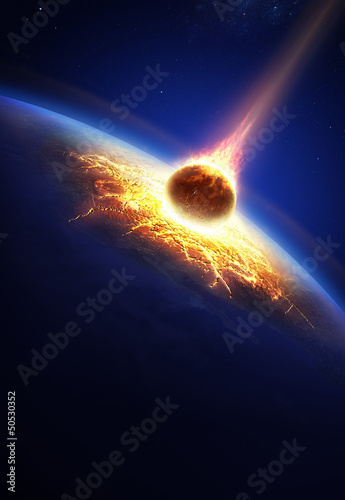 Earth and asteroid colliding
