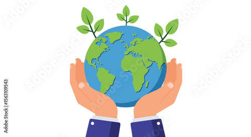 Earth day celebration vector illustration: hands holding earth with growing plants, ideal for environmental awareness posters