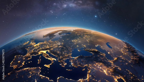 Earth Day concept | Globe | Earth | Planet Earth half night and clouds in space with stars