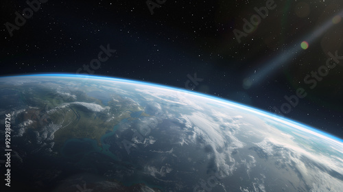 Earth from Space: A breathtaking view of Earth from space, showcasing the planet's vibrant blue oceans, swirling white clouds, and vast continents against the backdrop of a star-studded black sky.