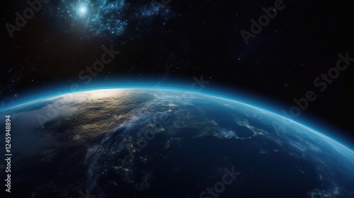 Earth from Space Realistic View of Planet with Starry Background and Glowing City Lights
