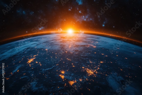 Earth from Space Satellite View Night Lighting Africa Middle East Asia Globe Connectivity
