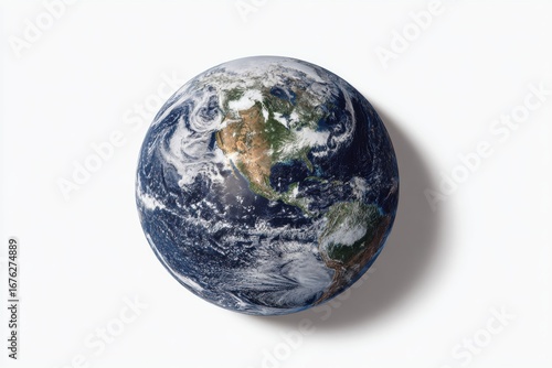 Earth globe against white detailed planet model showing continents and oceans ideal for educational or environmental concepts