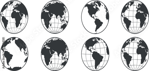 Earth globe icon set. earth hemispheres with continents. world map in globe shape isolated on white background. vecto