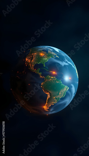Earth globe night lights view set on a transparent background, earth globe, or planet satellite view of the night, cinematic, with white tones