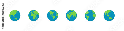 Earth globe set. World globe vector set. Planet earth doodle globe. World round map sign set. Continents color icons.