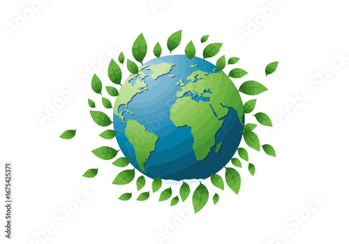 Earth Globe Surrounded by Green Leaves Ecology Concept.