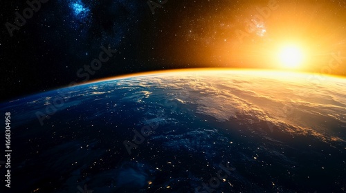 Earth glowing horizon at cosmic sunrise dramatic space exploration concept