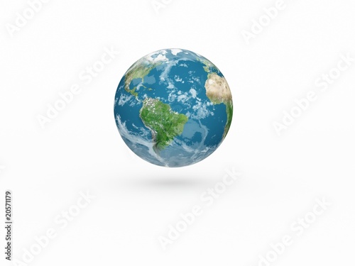 Earth model on white background with shadow