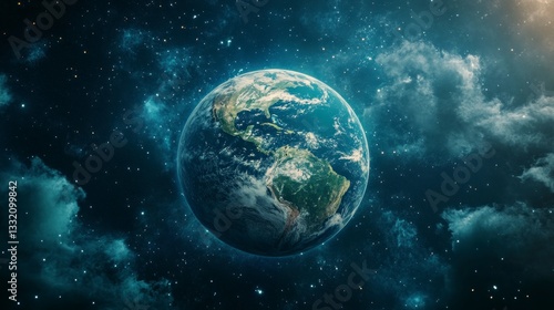 Earth Planet Floating in Starry Space Scene Illustration for Science Fiction