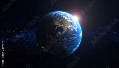 Earth shining quietly in deep space