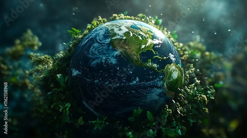 Earth surrounded by lush greenery nature global perspective serenity