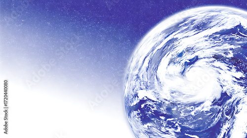 Earth viewed from space with a prominent cyclone forming over the ocean