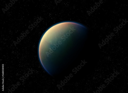 Earth-like planet in space. Super-Earth planet with atmosphere, realistic exoplanet surface.