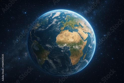 Earth's Embrace: A stunning perspective of Earth from space, showcasing the vibrant continents, swirling oceans, and delicate atmosphere bathed in the cosmic glow.