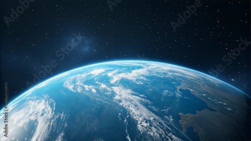 Earth's Orbit in Outer Space: Planet Surface, Starry Background, and the Milky Way