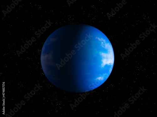 Earth's twin from a distant galaxy. Beautiful planet with ocean. The search for extraterrestrial intelligence 3d illustration.
