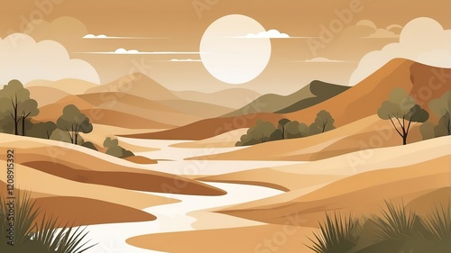 Earthy abstract landscape, tones of ochre, olive, and sand blending harmoniously.