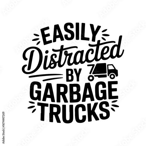 Easily Distracted By Garbage Trucks. Vector Design Isolated on White Background