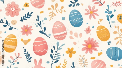 Easter 2D Vector Pattern | Cute Minimalist Easter Eggs, Bunnies & Flowers | Pastel Spring Seamless Design for Holiday Decor & Gift Wraps