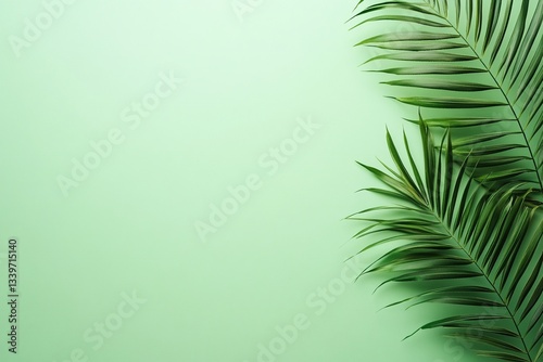 Easter Background, Easter Banner, Lush Green Palm Leaves on Mint Background Tropical Summer Design Copy Space