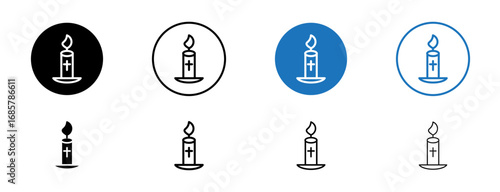 Easter candle icons set in black and blue colors on white background
