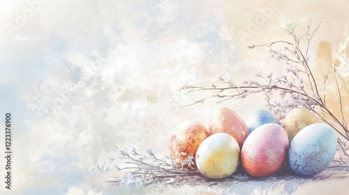 Easter card with colorful eggs in Light colors, festive mood