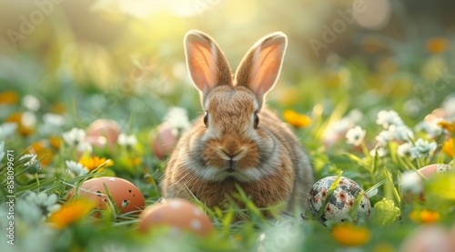 Easter Day has cute eggs and bunnies, flowers, patterns, and a white background.