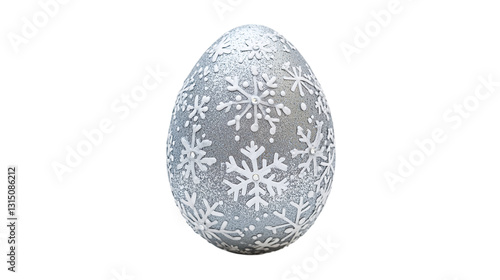 Easter egg adorned with tiny snowflakes and frosted silver, a winter wonder, isolated on white background --ar 16:9
