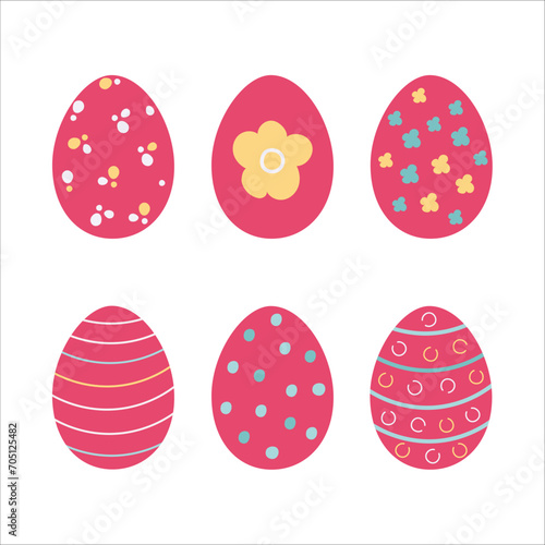Easter egg collection. Red. Abstract and floral patterns. Vector illustration, isolated objects on white background.