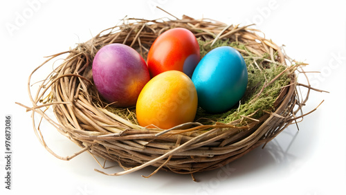Easter eggs in a nest isolated on white background, Easter, eggs, nest, isolated, white background, spring, holiday