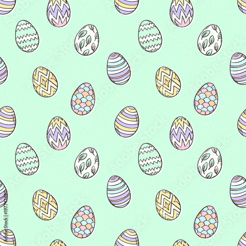 Easter eggs pattern. Spring holiday symbols. Egg sketch. Holiday decoration. Kids drawing. Easter ornament. Vector background.