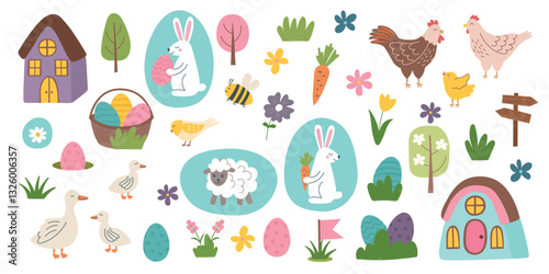 Easter elements collection. Easter pliparts isolated on white background. Easter concept. Vector hand drawn objects.