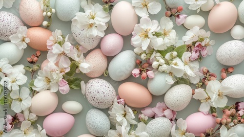 Easter Flat Lay with Pastel Eggs and Floral Accents