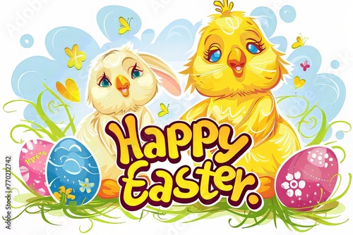 Easter Greetings: cute clip art with phrases like "Happy Easter"