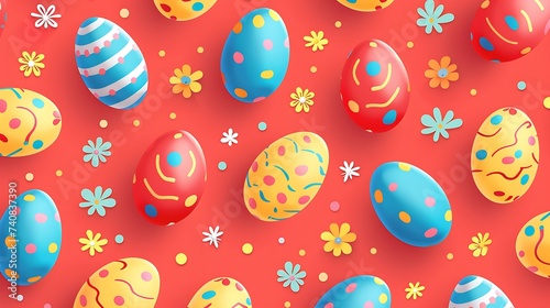 Easter holiday background wallpaper, bunny, colorful eggs pattern, colored egg, banner design, card poster