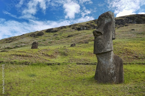 Easter Island – Moai stone statue at the Ranu Raraku vulcano stone quarry