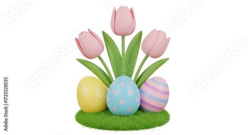 Easter Spring Tulips and Decorated Eggs Arrangement