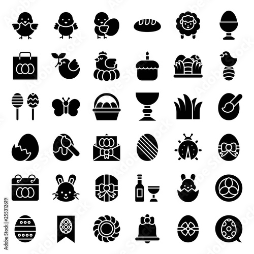 Easter vector illustration set, solid style icon
