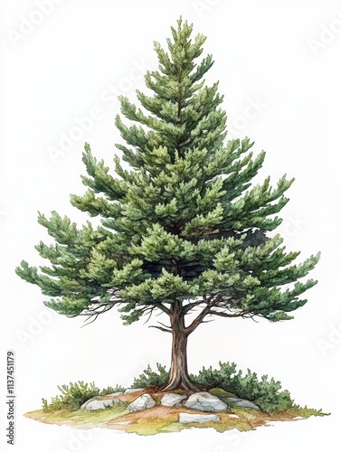 Eastern Hemlock Tree Technical Illustration for Botany and Forestry Uses Generative AI