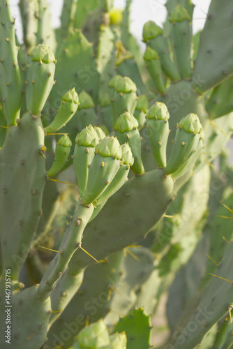 Eastern Prickly Pear Cactus (Opuntia humifusa) devil's-tongue or Indian fig, wild plant in nature closeup shot, prickly pear is a species of cactus that has long been a domesticated crop plant