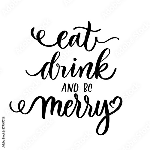 Eat drink and be merry - black hand lettering inscription.