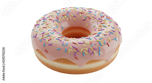 Eating Fresh Donut with Pink Glaze and Colorful Sprinkles